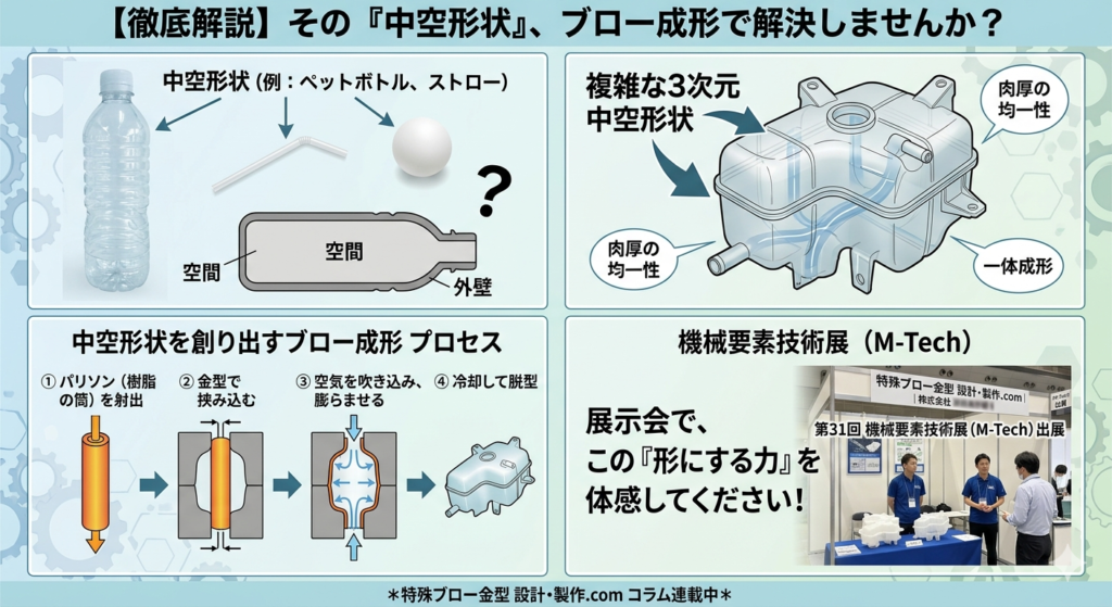 【M-Tech 2026出展決定】その中空形状、あきらめる前に「ブロー成形」という選択肢を。