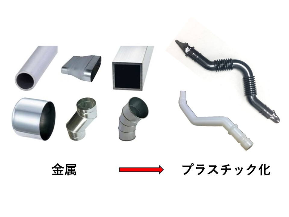 今、多くの企業様が国内生産を検討されていますが、「コスト」や「効率」が大きな課題となります。その解決策のひとつとして、「金属や木材からプラスチック(ブロー成形)への素材転換」という選択肢があります。これまで金属や木材で作られていた部品をブロー成形に置き換えることで、国内生産における新たな可能性が広がります。 部品をまとめる: 金属や木材では別々に作って組み合わせていたパーツも、ブロー成形なら最初から「一つの部品」として一体化させることが可能かもしれません。これにより、組み立ての手間(工数)を大幅に減らせる可能性があります。 強さと軽さの両立: 「プラスチックだと強度が心配」というお声もいただきますが、ブロー成形特有の中空構造を活かし、適切な「リブ(補強)」を設けることで、実用的な強度と、圧倒的な軽さを両立できます。 素材を活かす: 防錆処理(金属)や表面塗装(木材)といった工程を省ける場合もあり、結果としてトータルコストを抑えることにつながります。