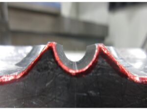 - 懸念点: 製品の外観面には影響しませんが、製品内部の線状の窪みが「応力集中」の起点となり、製品の脆性(脆さ)に悪影響を及ぼす可能性がありました。